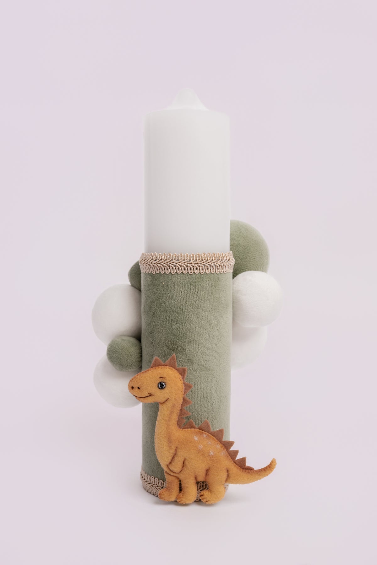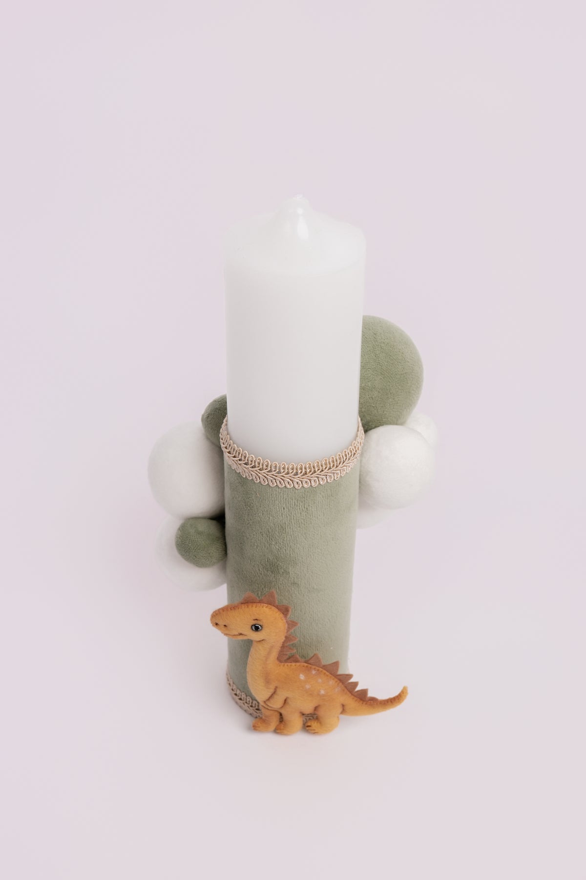 Lumanare de botez cu dinozaur din fetru și baloane din catifea