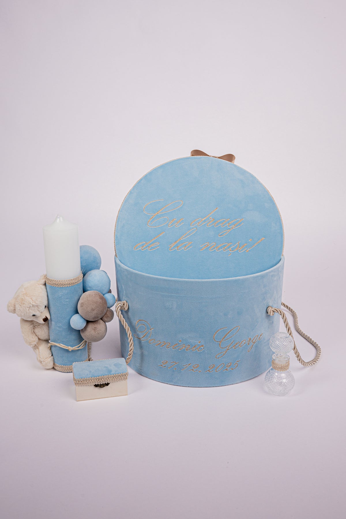 Lumanare de botez din catifea albastra cu ursulet si bile - Embrace of Innocence - Produse recomandate