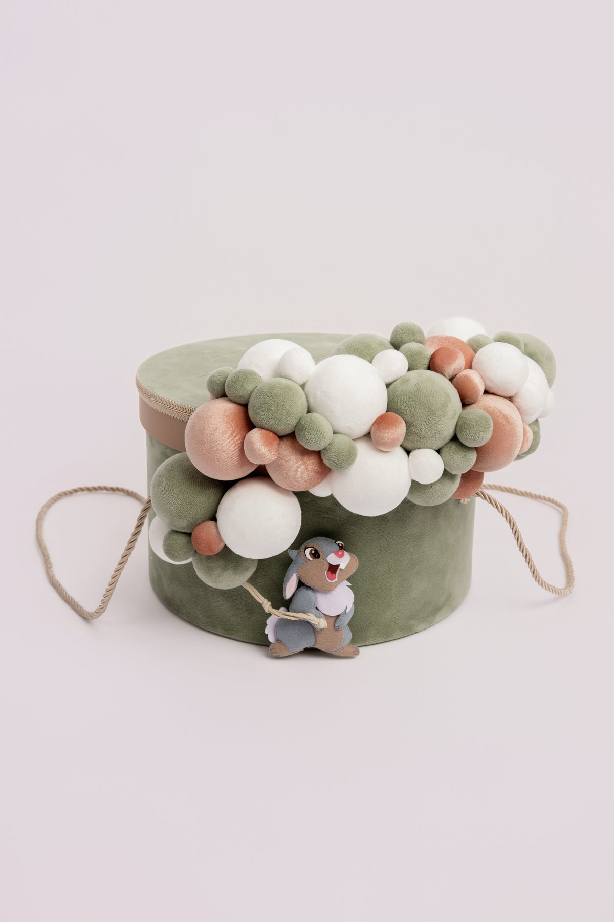 • *Cufarul*, o bijuterie in sine, este realizat cu grija din iepuras cu fetru, cu detalii din catifea si baloane din catifea, aducand un farmec aparte oricarui moment special.