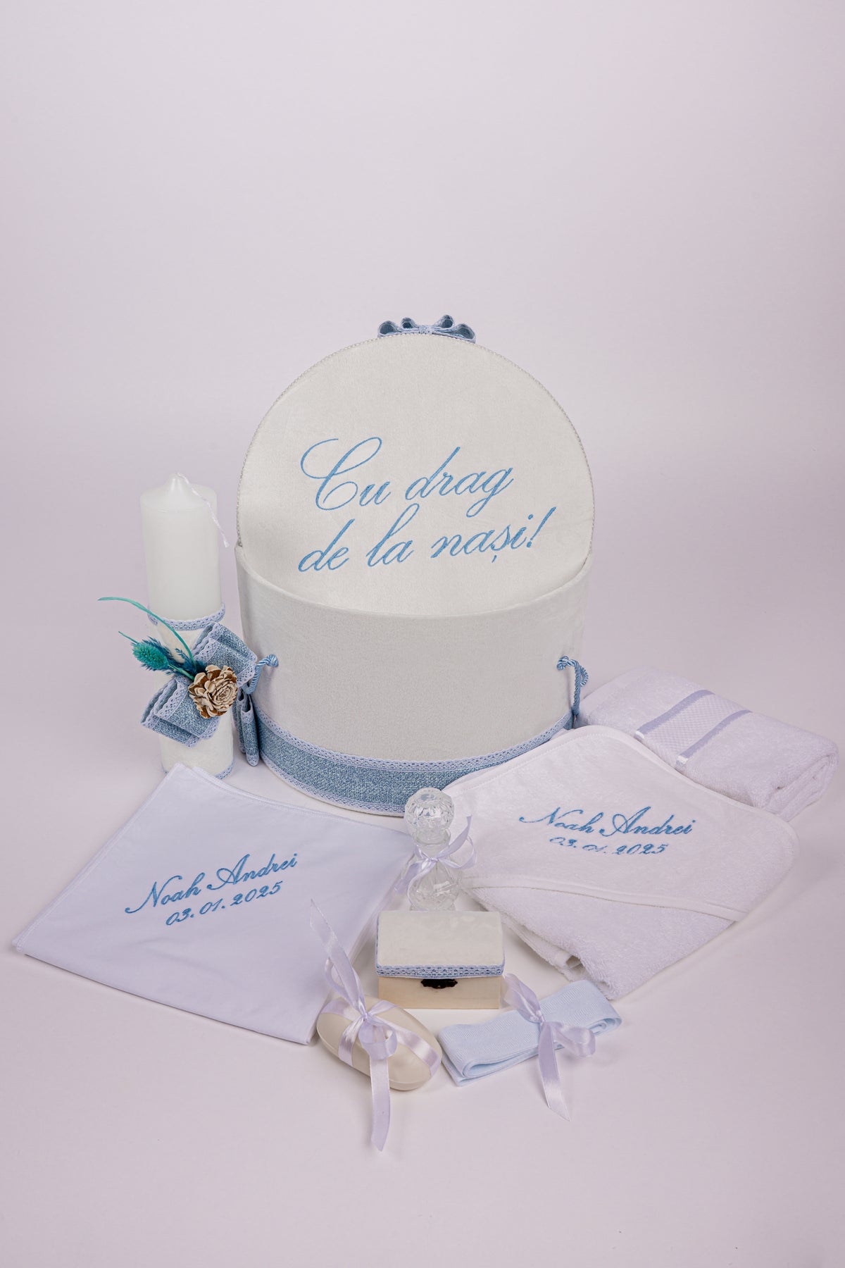 Trusou de botez personalizat alb si bleu pentru baieti 5 - babyjohn.ro