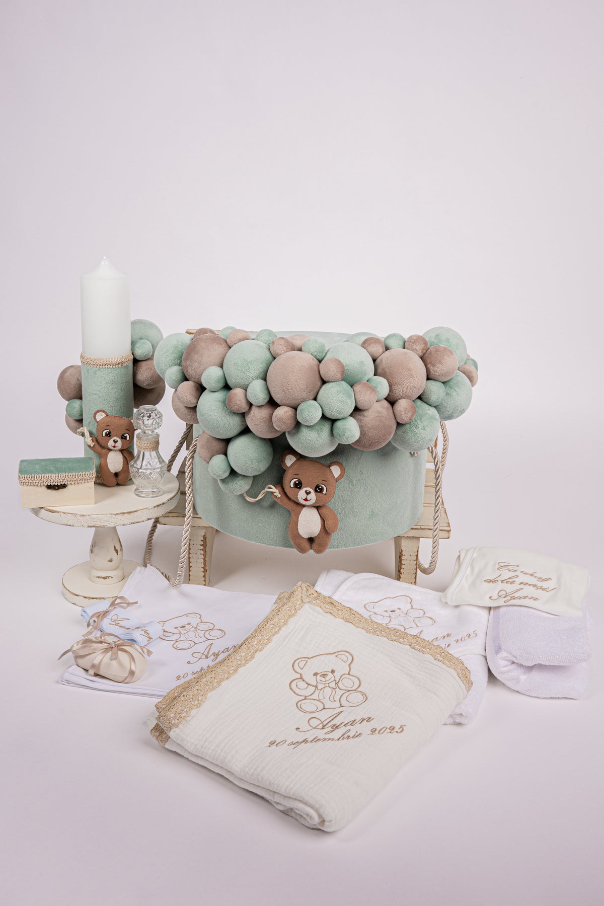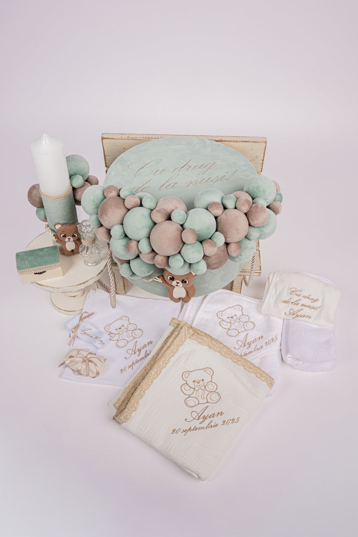*Descopera trusoul verde din ursulet cu fetru*, o colectie delicata ce imbratiseaza momentul unic al botezului.